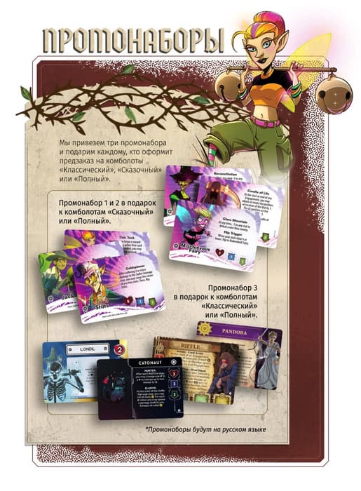 Любую базу сейчас удастся купить за 2750 рублей, каждое дополнение (кроме «Бабы Яги») — за 1750 рублей, «Бабу Ягу» (которая не играется без трёх других колод) — за 1250 рублей. Кроме того, можно приобрести различные комболоты, чтобы бесплатно получить специальные промонаборы.