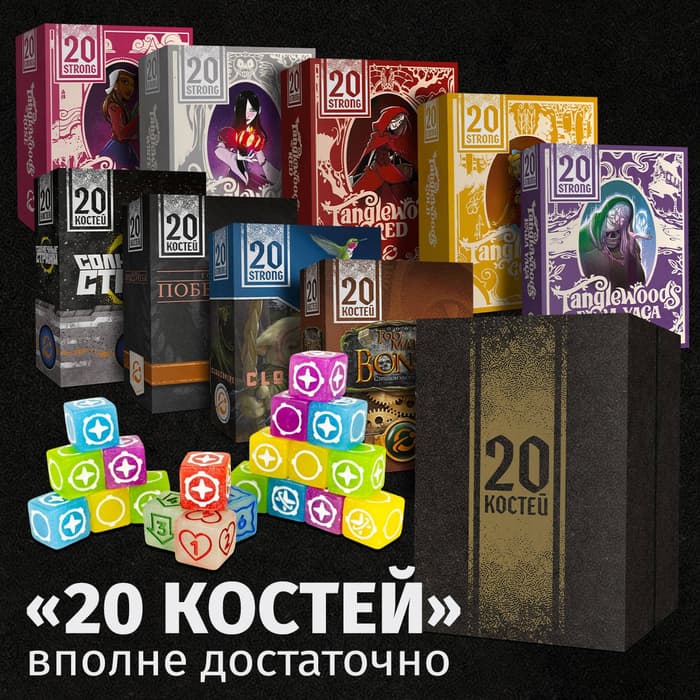 Издательство «Лавка Игр» приготовило приятный подарок для всех поклонников настольных соло-проектов. Стало известно, что открылся предзаказ на серию игр «20 костей» (она же 20 Strong). Речь идёт об одиночной игровой системе, основанной на кубиках и картах с временем партии до 30 минут.