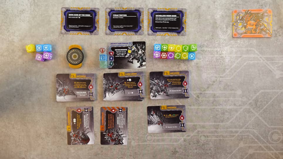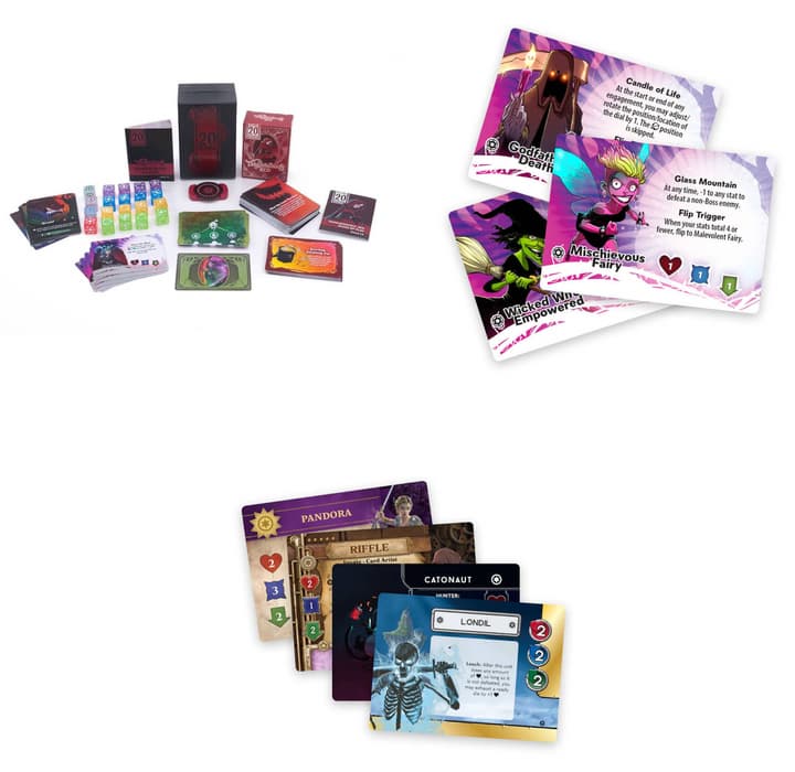 В этих настолках у игроков есть 20 кубиков, с помощью которых нужно пройти испытания, представленные колодой карт. Каждая колода бросает новый вызов, и каждую партию приходится искать новый подход. Для победы в «20 костей» необходимо сокрушить босса и не потерять все очки здоровья.