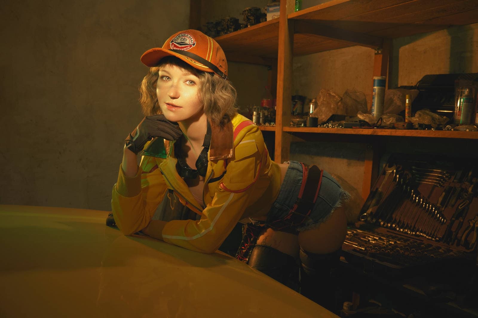 Косплеер Ева «Erodaicon» Отомская перевоплотилась в Синди Аурум из игры Final Fantasy XV — главного механика автомастерской «Молот». Но на этот раз героиня решила починить не машину Ноктиса, а отечественный автомобиль.