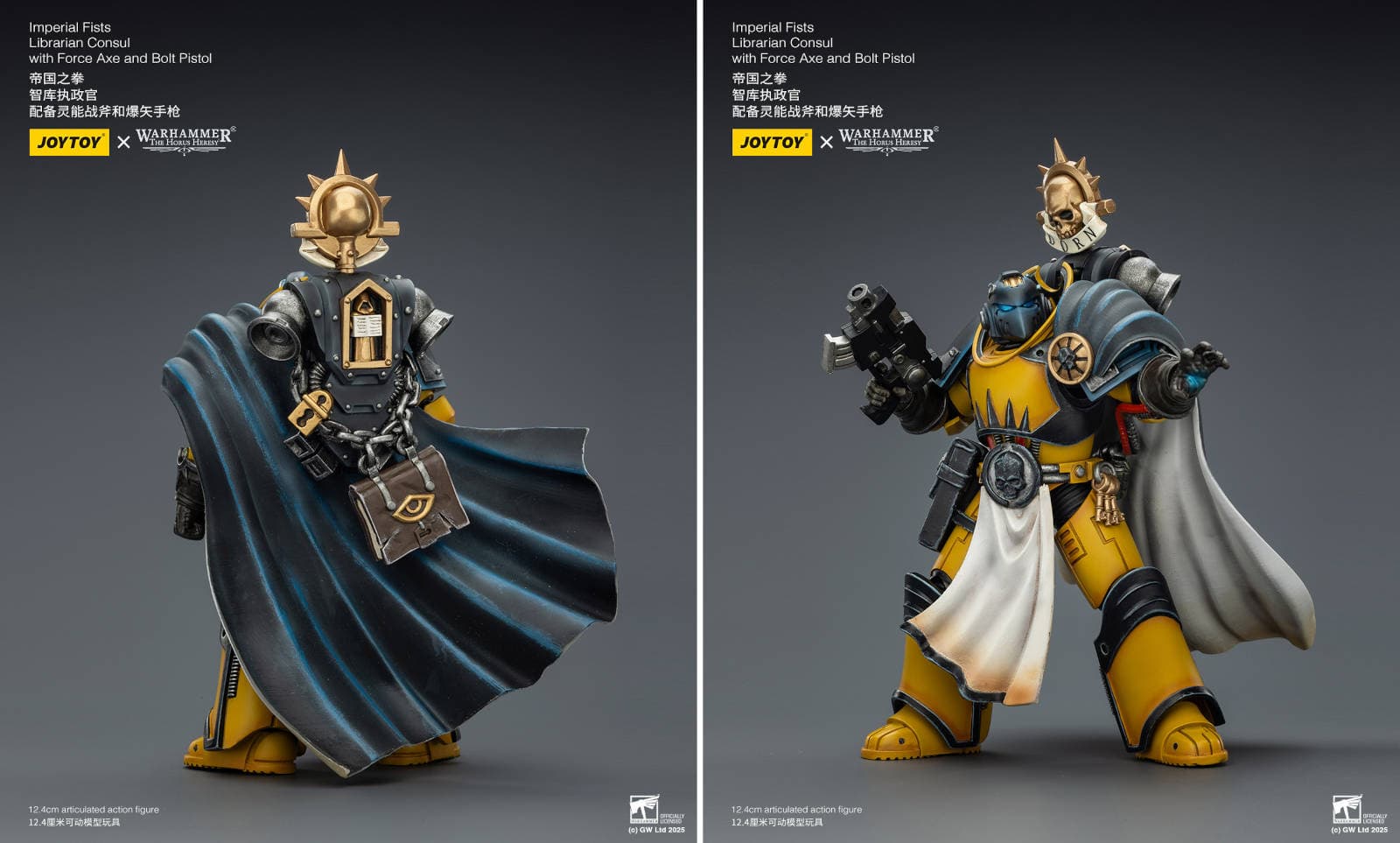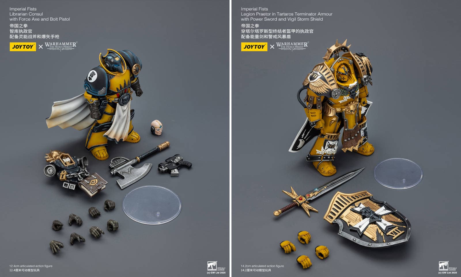 Компания JoyToy вновь вспомнила о поклонниках вселенной Warhammer: The Horus Heresy и легиона «Имперские Кулаки». Сегодня она открыла предзаказ на фигурки библиария-консула и претора легиона в терминаторской броне «Тартарос», выполненные в масштабе 1/18.
