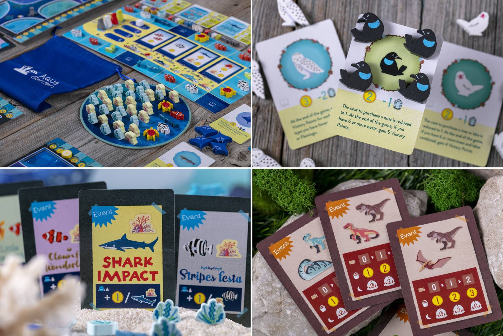 Благодаря данным настолкам, предназначенным для 1-4 человек, участники смогут создать собственные аквариумы, вольеры и динопарки, раздобыть множество красочных деревянных фишек, оценить двухслойные планшеты и увидеть партии, занимающие 60–90 минут.