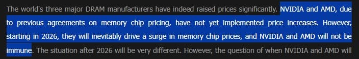 Для NVIDIA рост цен начнётся в феврале, а AMD — с января, после завершения четвёртого квартала 2025 года. Согласно отчёту, это лишь начало, и ситуация может ухудшиться в течение года. Также NVIDIA планирует выпуск RTX 50 Super, но дефицит памяти ставит под вопрос её выход.
