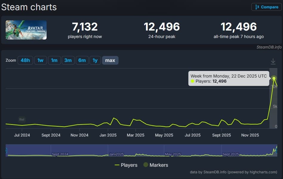 После выхода дополнения From the Ashes и премьеры фильма «Аватар: Огонь и пепел» игра Avatar: Frontiers of Pandora резко увеличила число игроков в Steam.