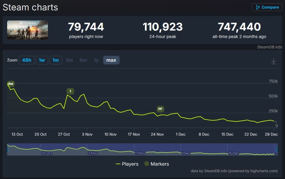 Свежие данные SteamDB указывают на негативную динамику вокруг Battlefield 6.