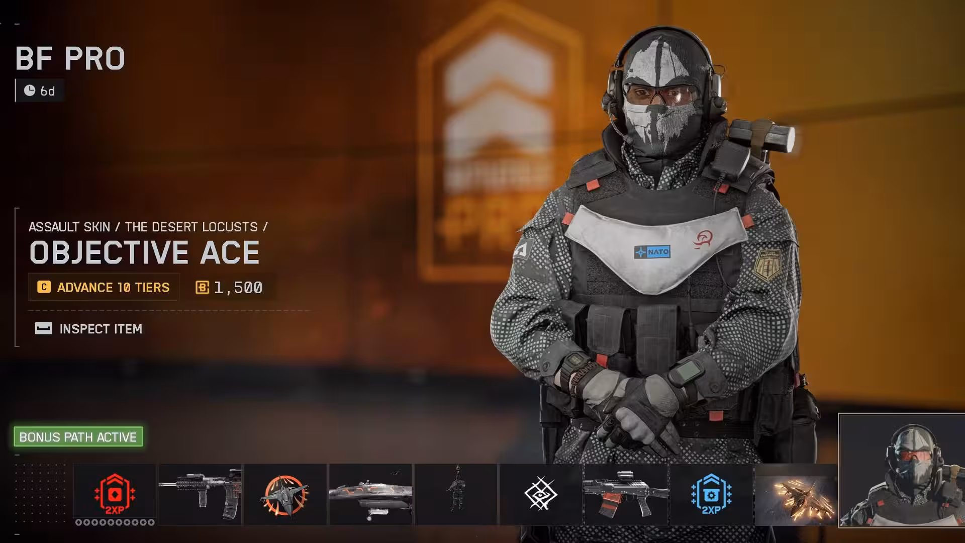В качестве финальной награды предлагается новый скин для штурмовика — The Desert Locusts, плюс несколько второстепенных косметических предметов и два бустера опыта для снаряжения.