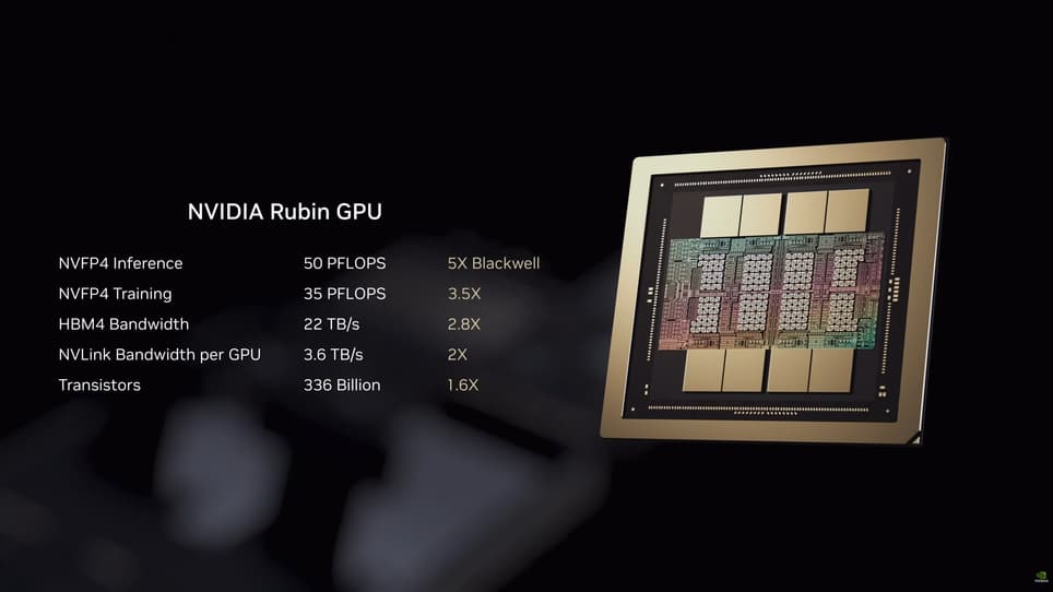 Сердцем системы стал Rubin GPU. Этот чип с 336 миллиардами транзисторов создан для абсолютного превосходства в ИИ-вычислениях. Благодаря HBM4 пропускная способность достигает 22 ТБ/с на чип, почти в три раза выше предыдущего поколения. В задачах высокоскоростного вывода Rubin достигает 50 PFLOPS (NVFP4), что в пять раз превышает возможности Blackwell.