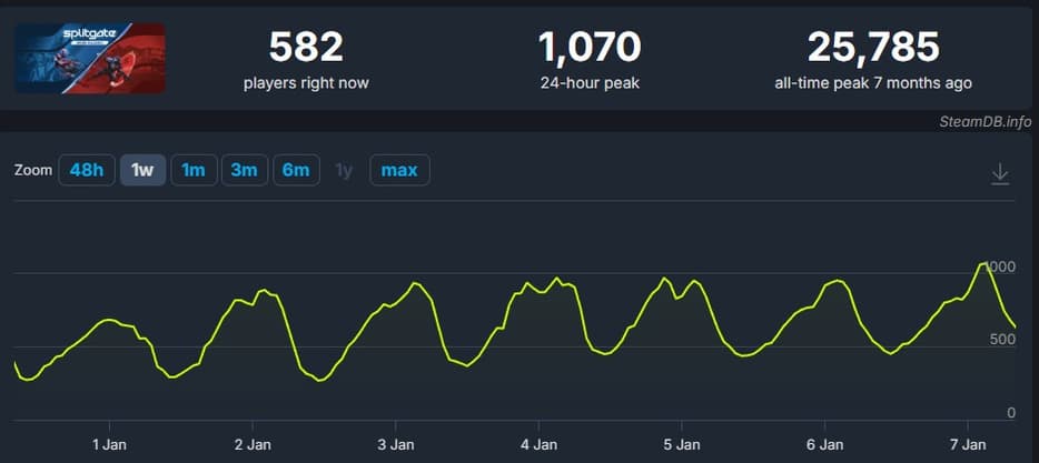Студия 1047 Games ответила на критику низких показателей одновременных игроков в Steam для своего многопользовательского шутера Splitgate: Arena Reloaded. В официальном заявлении разработчики подчеркнули, что графики Steam не отражают реальную популярность игры.
