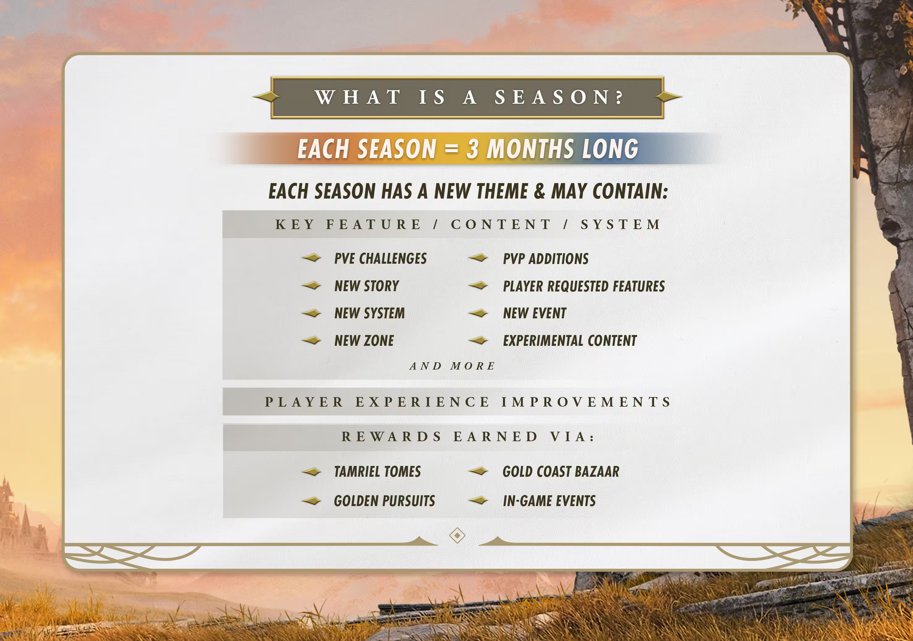 Один сезон в The Elder Scrolls Online будет длиться 3 месяца — каждый будет предлагать новую тему и может содержать: