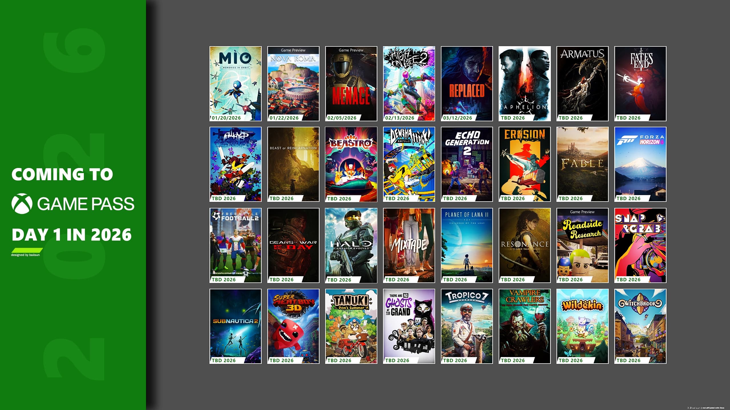 Список игр, которые выйдут в Xbox Game Pass в 2026 году в день релиза, уже насчитывает 32 проекта. Среди них — Gears of War: E-Day, Halo: Campaign Evolved и Forza Horizon 6, а также Replaced, Beast of Reincarnation, Planet of Lana 2, Tropico 7, Subnautica 2 и Vampire Crawlers.