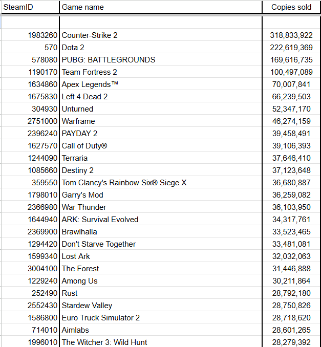 Полная таблица GameDiscoverCo доступна по следующей ссылке.