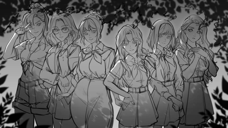 Уважаемы друзья! Мы понимаем, что расстроили вас на анонсе, но в свое оправдание прикладываем скетчи - разные этапы работ над артом. И да, нейронка при работе над ним не использовалась, хоть в какой-то момент у некоторых героинь и началась полидактилия.