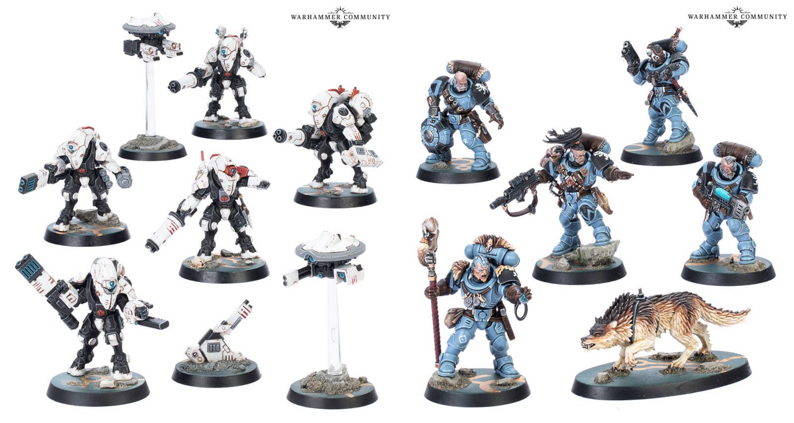 В команде «Боескафандры-призраки XV95» можно отыскать Шас’Вре (герой из касты Огня), Инфильтратора, Нейтрализатора, Обозначителя, Освободителя, Lodestar со стелс-маяком и двух дронов – MV15 и MV75. У «Волков-Разведчиков»: Вожак Стаи, Fangbearer, Frosteye, Стрелок, Мастер Ловушек, Рунный жрец – Скальд, Охотник и Волк Фенриса.
