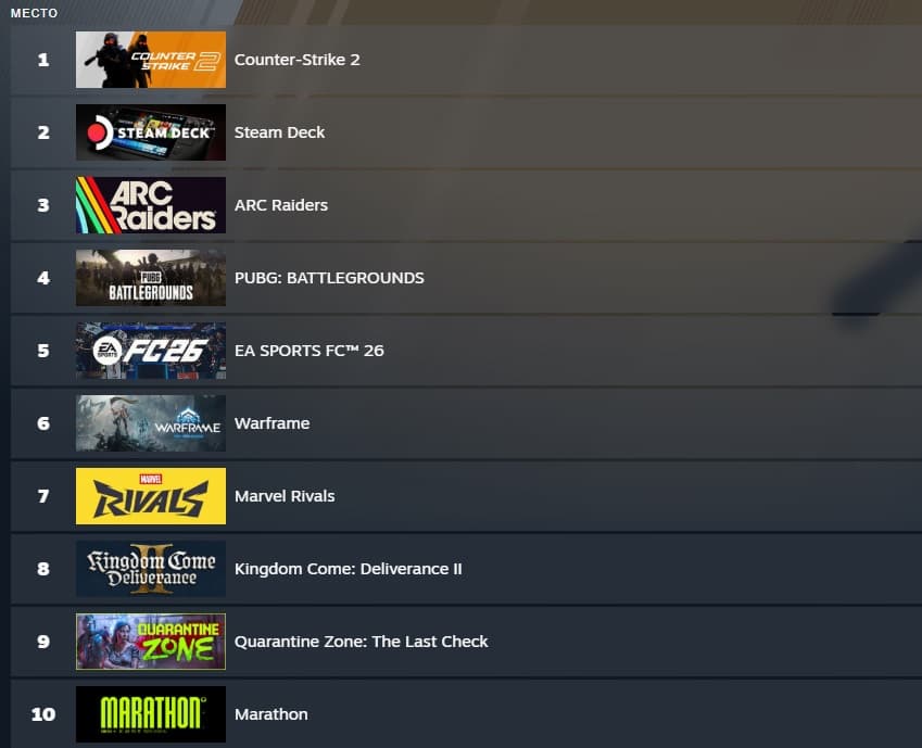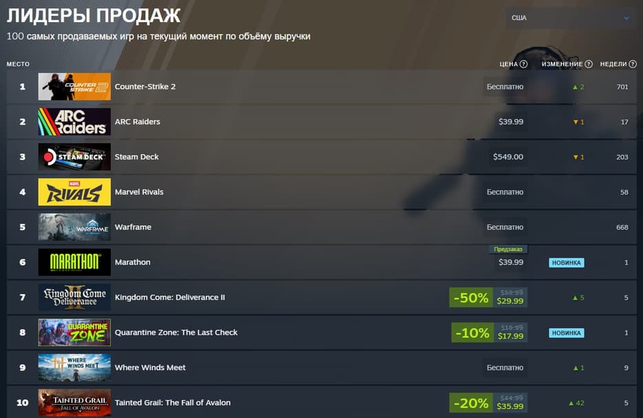 На Западе цена в $40 позволила Марathon попасть в список бестселлеров Steam — топ-6 в США и топ-10 глобально.