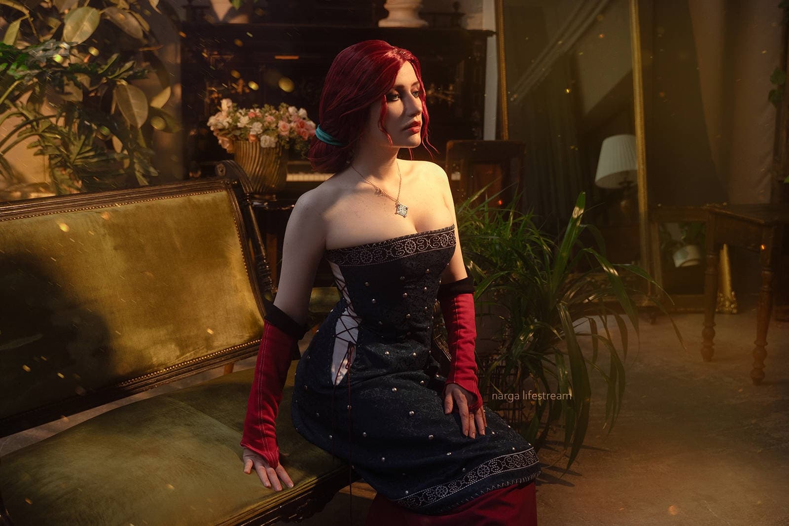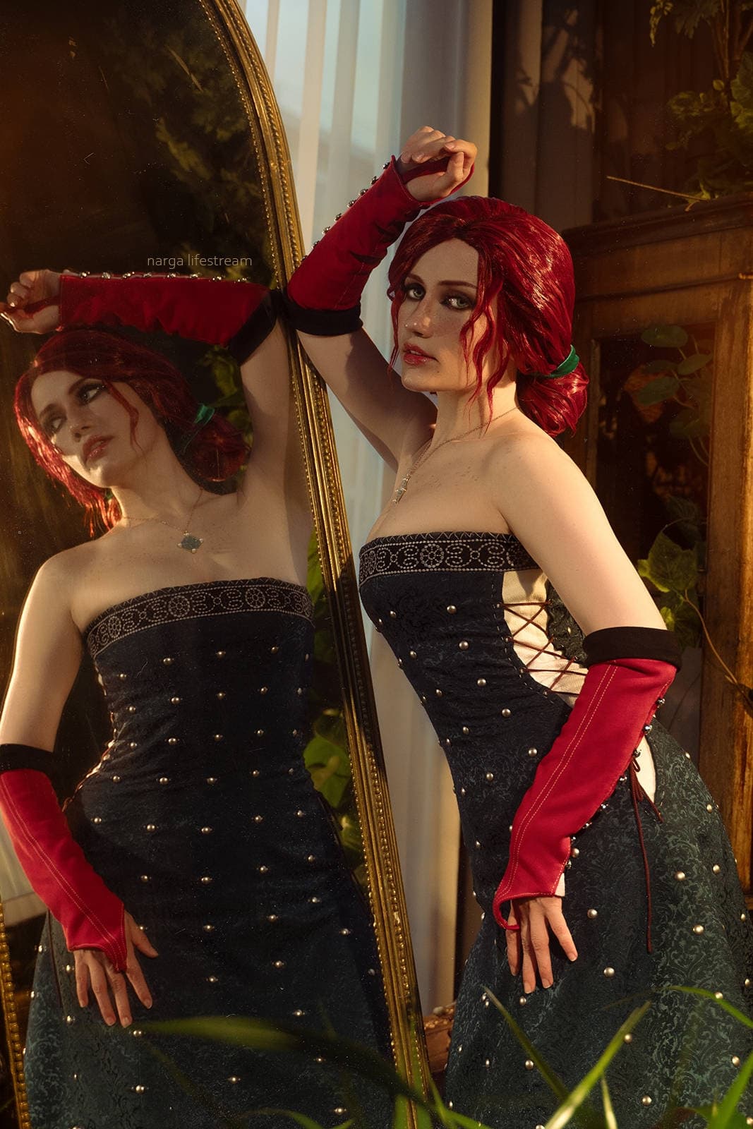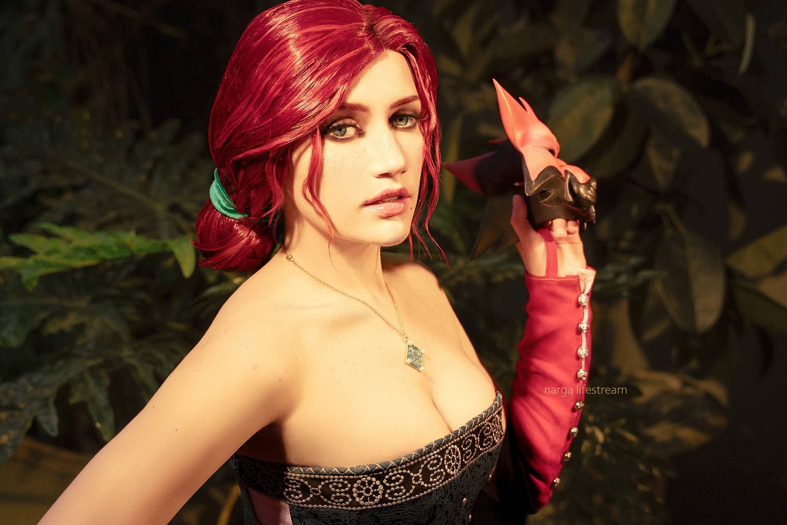 Косплеер Narga Aoki предстала в образе Трисс Меригольд из игры «Ведьмак 3: Дикая Охота», которой не терпится посетить бал-маскарад вместе с Геральтом, чтобы помочь Альберту Вегельбуду бежать в Ковир.