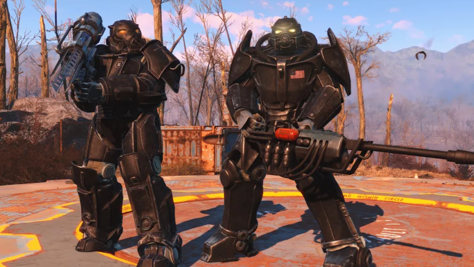 В Fallout 4 броня увеличилась в размерах, стала напоминать меха (боевого робота) и обычное оружие из-за её размеров выглядело слишком маленьким: