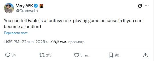 Тему подхватили и представители индустрии. В сети расходятся цитаты вроде «самым зловещим существом в Альбионе станет лендлорд», а некоторые прямо заявляют, что собираются стать «худшим лендлордом в истории Fable». Похоже, в 2026 году игрокам предстоит не только спасать мир, но и участвовать в одной из самых жёстких симуляций выселений.