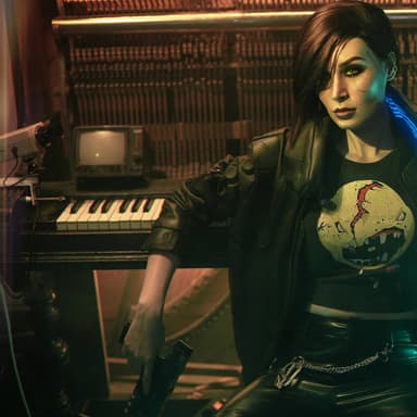 Модель Kristina Rein перевоплотилась в соло Ви из игры Cyberpunk 2077, чтобы выполнить поручения различных организаций, корпораций и предприятий, а также заработать побольше евродолларов.