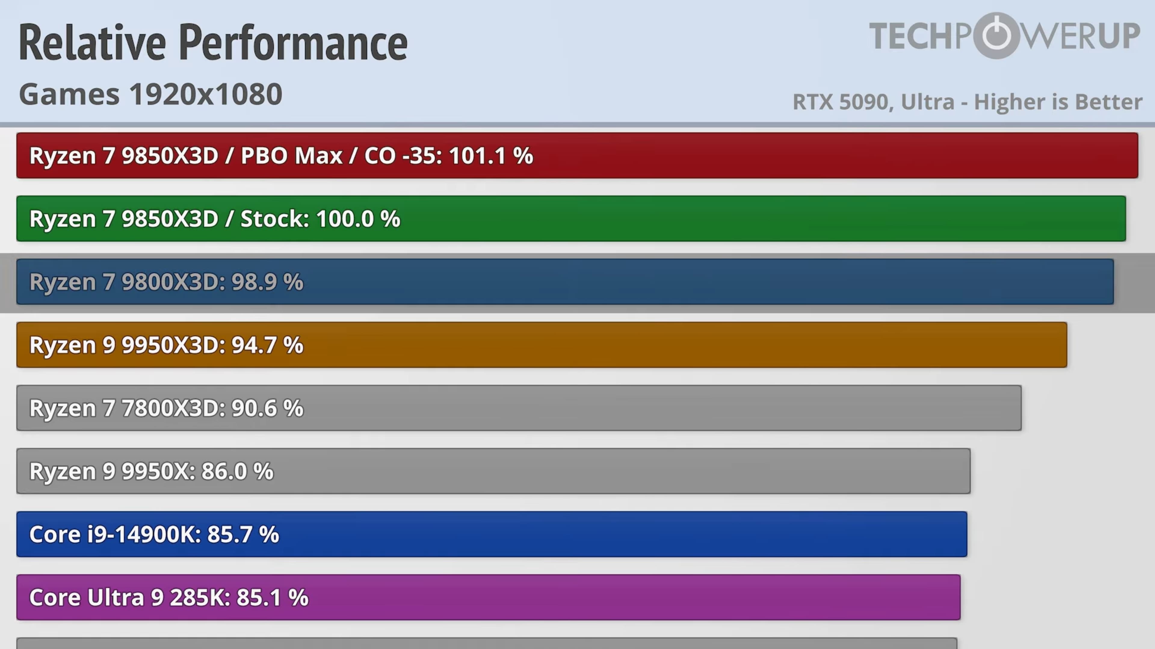 На текущем этапе AMD фактически конкурирует сама с собой. Согласно тестам TechPowerUp, самый производительный игровой процессор Intel, Core i9-14900K, — в 1080p отстаёт от Ryzen 7 9850X3D примерно на 15%.