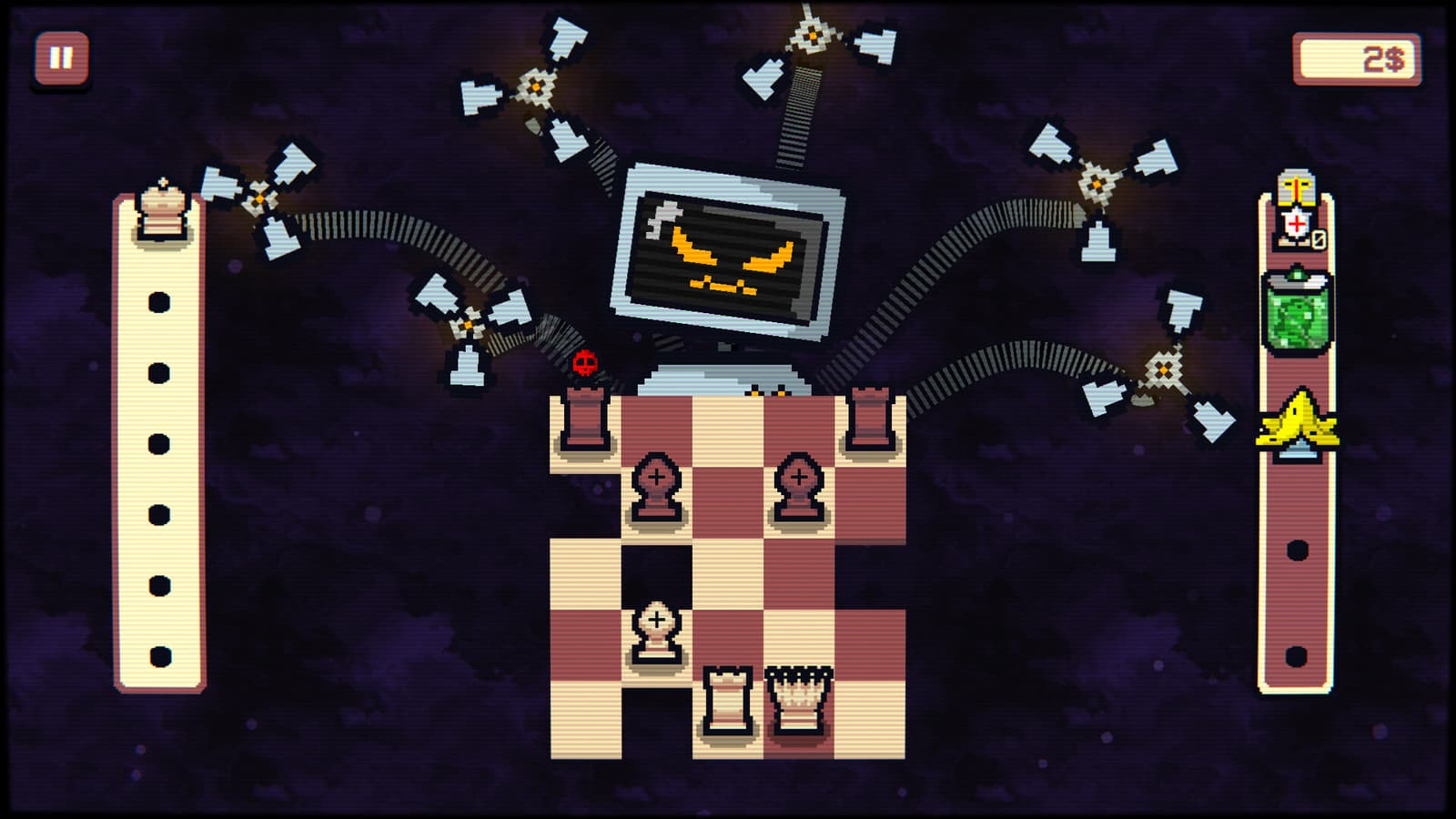 Gambonanza превращает шахматную партию в пошаговый рогалик со случайными модификаторами. Вместо привычной цели «поставить мат» игроку нужно захватить все вражеские фигуры, комбинируя гамбиты с различными эффектами, улучшения доски и нестандартные взаимодействия между фигурами.