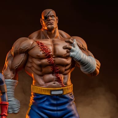 Скульпторам удалось мастерски передать изрубцованную грудь Сагата и его брутальный, устрашающий вид. Грозный боец муай-тай изображен в классических шортах синего и жёлтого цвета, а на руках и ногах у него красуются традиционные бинты. Высота статуи составляет 24,1 см, ширина — 11,4 см, глубина — 7,6 см.