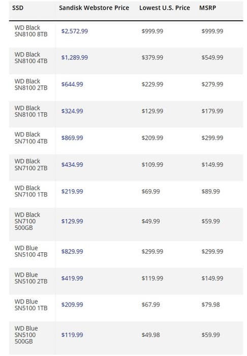 Рост цен затронул не только флагманские модели, но и всю линейку SSD. Согласно данным мониторинга цен у американских ритейлеров, изменения вступили в силу уже в этом месяце и подтверждаются на официальном онлайн-магазине SanDisk.