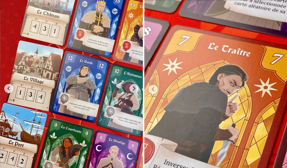 Каждый персонаж обладает уникальным эффектом: одни крадут монеты у соперников, другие перемещают карты между областями, третьи удваивают доход или даже отменяют чужие способности.