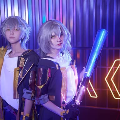 Косплееры Nikkol и Alisa Dvachevskaya перевоплотились в мужскую и женскую версии протагониста Honkai: Star Rail — Стеллу и Келуса, чтобы отправиться в путешествие между мирами на борту космического поезда «Звёздный экспресс».