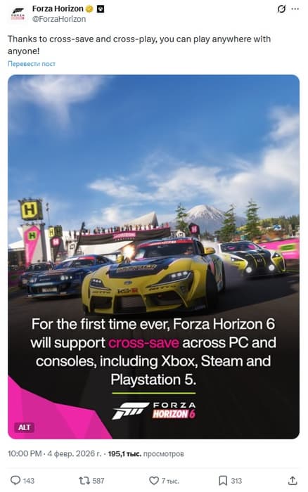 Главное — кросс-сохранения будет доступны не только между Xbox и PC, как раньше, но также затронут Steam и PS5. Это заметный шаг, особенно с учётом того, что Forza Horizon 6 отправит игроков в Японию, а Microsoft явно стремится сделать дебют серии на PlayStation максимально комфортным.