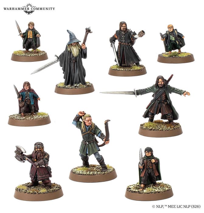 Благодаря набору «Братство кольца» (The Fellowship of the Ring) получится раздобыть миниатюры Гендальфа Серого, Арагорна, Леголаса, Гимли, Боромира, Фродо, Сэма, Пиппина и Мерри.