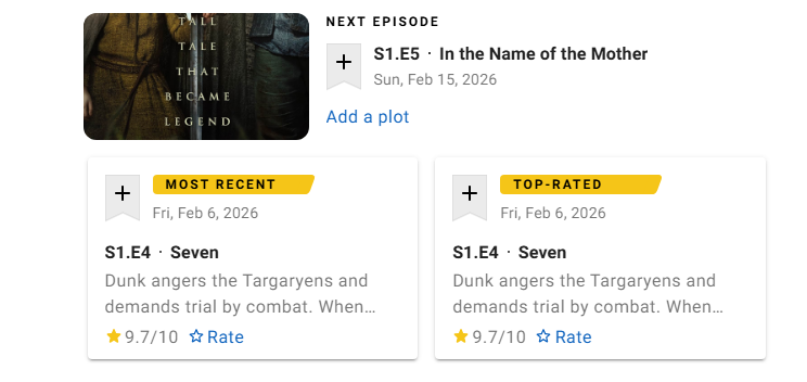 Динамика оценок подчёркивает растущий интерес аудитории. Первые два эпизода сезона получили 8,1 и 8,3 балла, третий — уже 9,3, а четвёртый вплотную приблизился к максимуму. На этом фоне фанаты активно обсуждают вероятность того, что финал сезона сможет взять 9,9 или даже 10 из 10 и встать в один ряд с абсолютными фаворитами франшизы — вроде «Рейнов из Кастамере» и «Битвы бастардов».