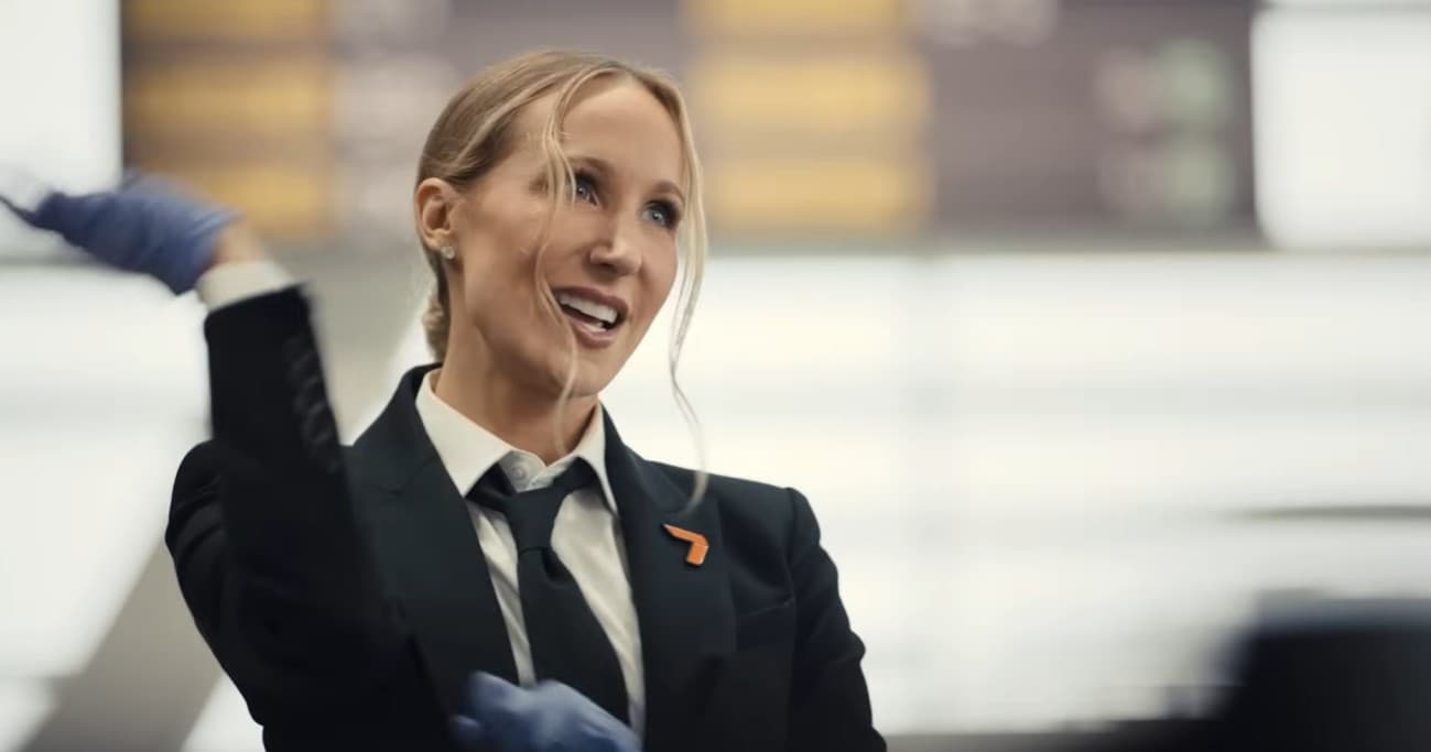 В ролике Глейзер и Стормаре играют сотрудников службы безопасности аэропорта, временно заменяющих настоящих работников, слишком увлеченных игрой. По сюжету, во время досмотра одного из пассажиров герои ведут себя неподобающим образом: персонаж Глейзер якобы крадет у мужчины часы, а герой Стормаре сообщает, что тот «случайно выбран для грубого обращения», требуя снять одежду «все, кроме обуви». Далее звучат реплики с двусмысленным подтекстом, после чего мужчине в рот помещают сканирующее устройство.