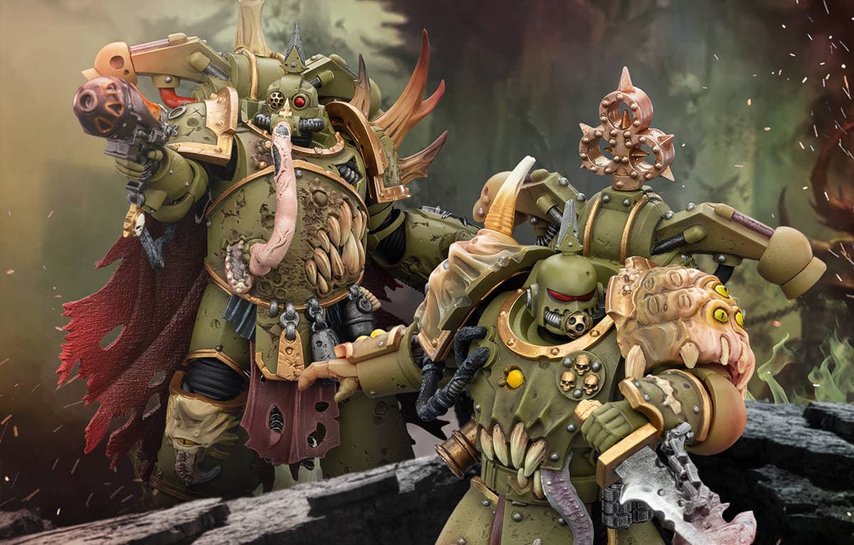 Стало известно, что сегодня команда представила фигурку чумного космодесантника с бубонным топором и чумным ножом, а также фигурку чемпиона чумных космодесантников с плазменным пистолетом и силовым кулаком из вселенной Warhammer 40,000.
