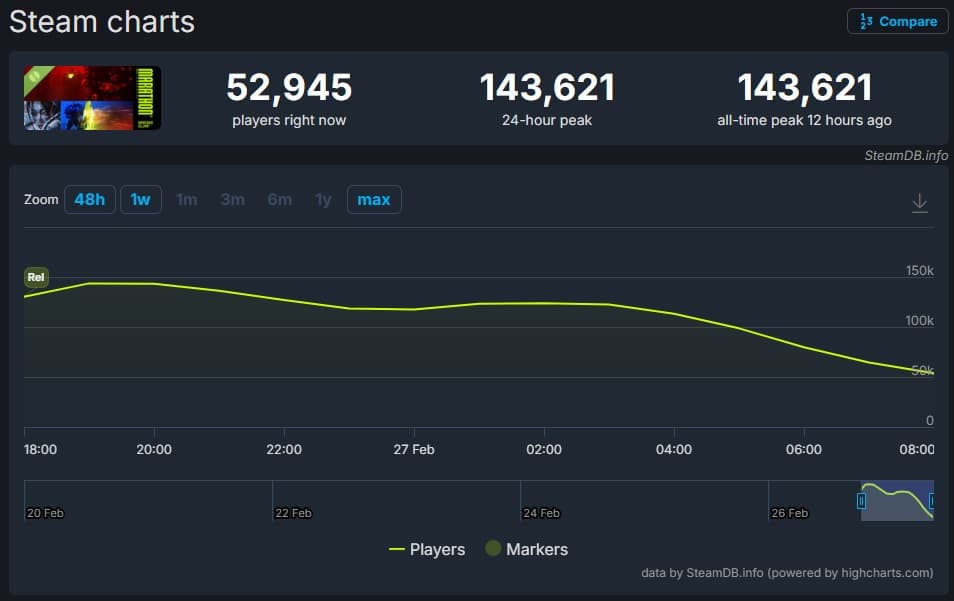 Эффект проявился сразу: за первые минуты на серверах Steam появилось более 50 тыс. игроков, через час число превысило 100 тыс., а в итоге на платформе Valve одновременно играло свыше 143 тыс. человек одновременно. Это внушительный показатель, подтверждающий, что Marathon привлекает внимание широкой аудитории. Теперь остаётся вопрос, станет ли игра новым флагманом Bungie или лишь временным всплеском интереса.