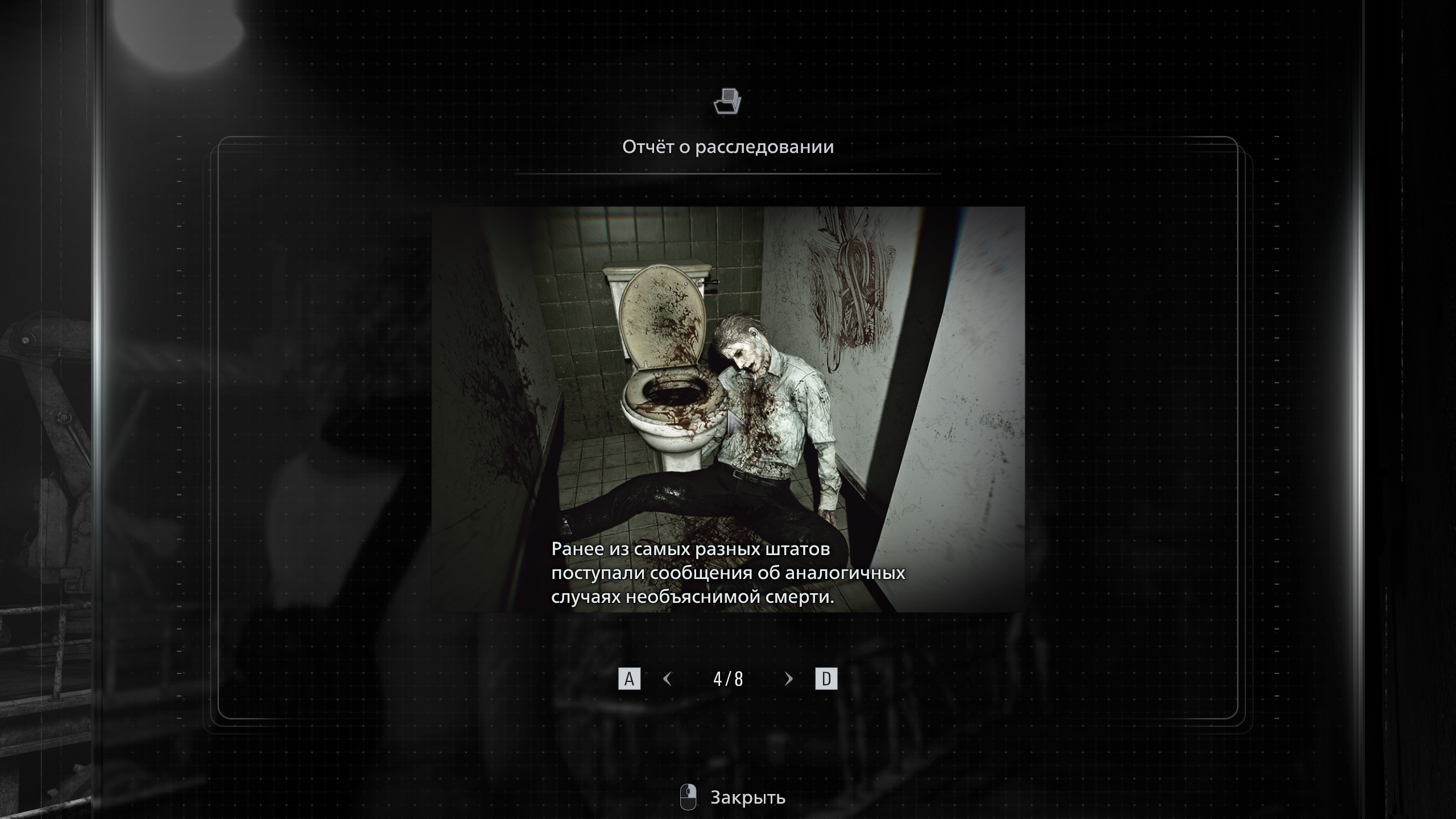 Примечание: смысл этого шага связан с одной из фотографий в материалах расследования Грейс. На снимке рядом с телом в туалете можно увидеть цифру 8, написанную кровью.