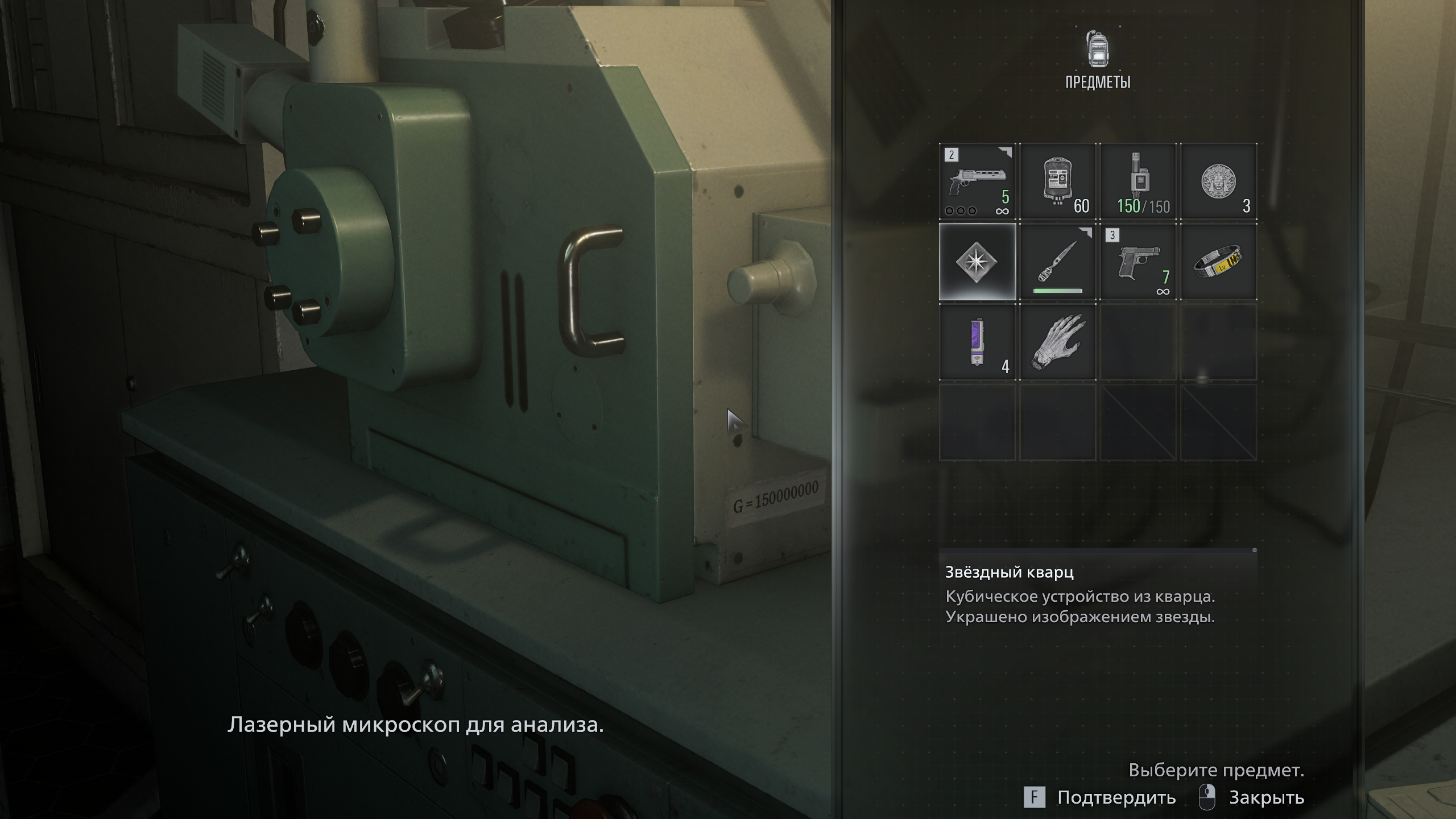 Осмотрите корпус лазерного микроскопа в лаборатории гематологии. На нём есть наклейка: G = 150000000