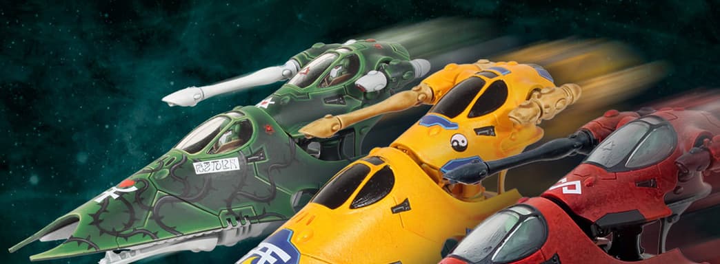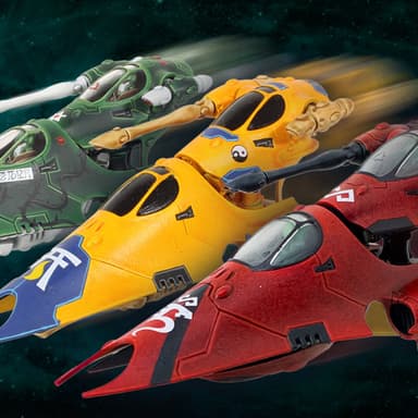 Команда сообщества Warhammer 40,000 опубликовала снимки раскрашенных версий миниатюры гравицикла «Гадюка» в цветах таких миров-кораблей эльдар, как Сейм-Ханн, Биель-Тан, Алаиток, Йанден и Ультве.