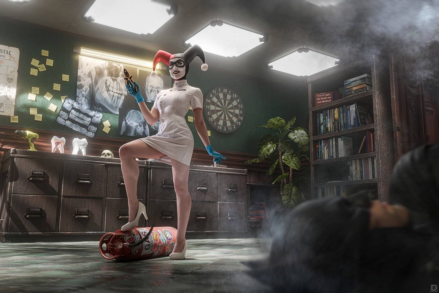 Косплеер saint.elena отправилась в небезопасный Готэм-Сити, чтобы перевоплотиться в Харли Квинн, встретиться с Джокером и устроить ловушку для надоедливого Бэтмена в кабинете дантиста.