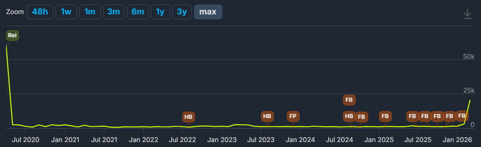 В марте ремейк Resident Evil 3 получил скидку 90% и онлайн в Steam превысил отметку в 20 тысяч игроков (при абсолютном рекорде в 60 тыс. на релизе). Последний раз такой высокий онлайн у игры был 6 лет назад.