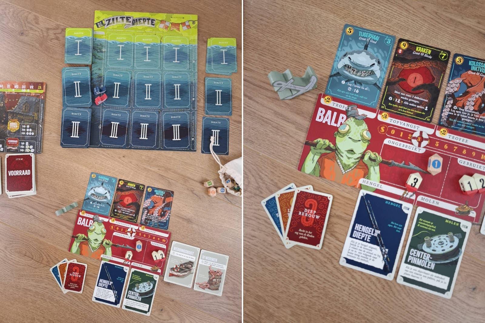 Игровой процесс построен вокруг выбора из сетки девяти стопок карт на разной глубине с различными значениями на обратной стороне. Игроки переворачивают карты, чтобы узнать, хватит ли им сил поймать открытую добычу. Для ловли тратятся кубики, которые обновляются в начале каждого раунда.