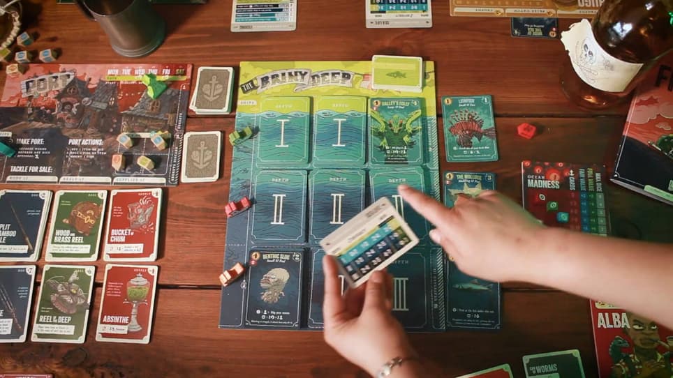 В этой настолке участникам предстоит вытаскивать из океана странные и порой страшные вещи, есть всякую гадость и решать, стоит ли ловить рыбу дальше или вернуться в гавань, чтобы продать улов и приобрести улучшения (плюс придется думать о том, насколько сильно они хотят свести с ума весь мир).
