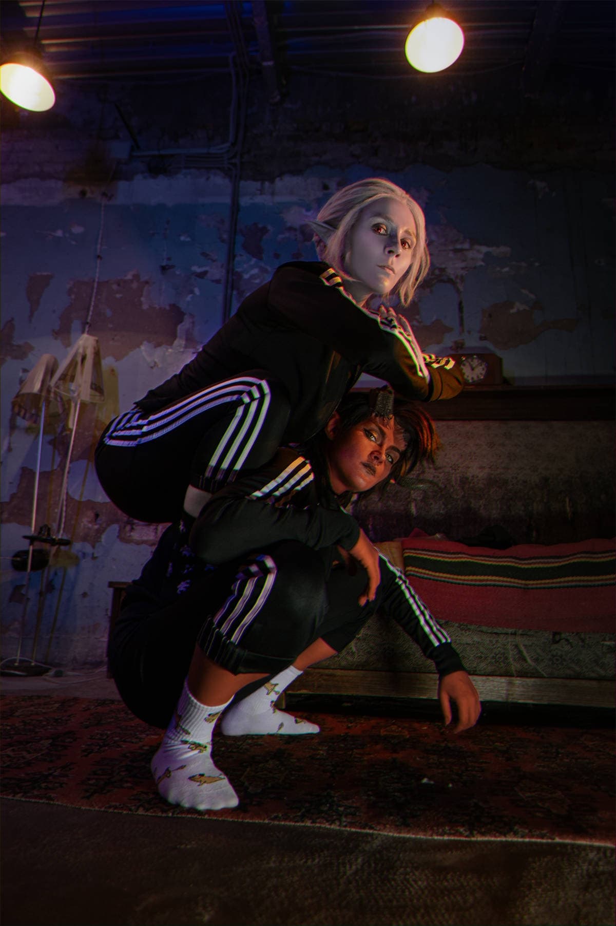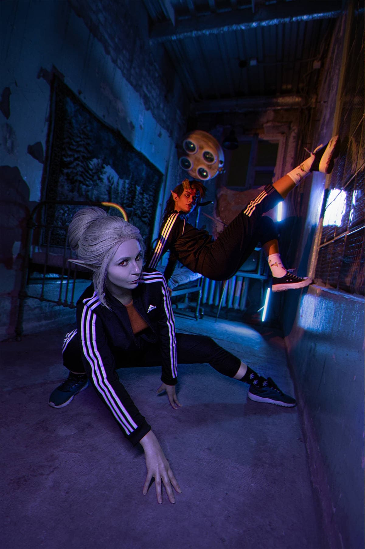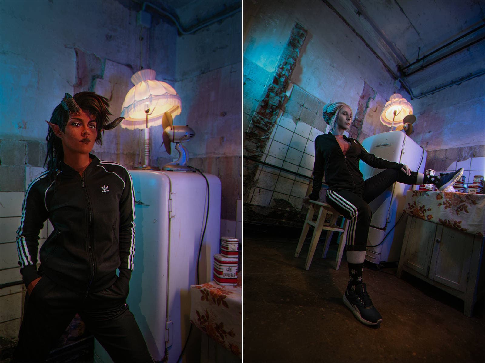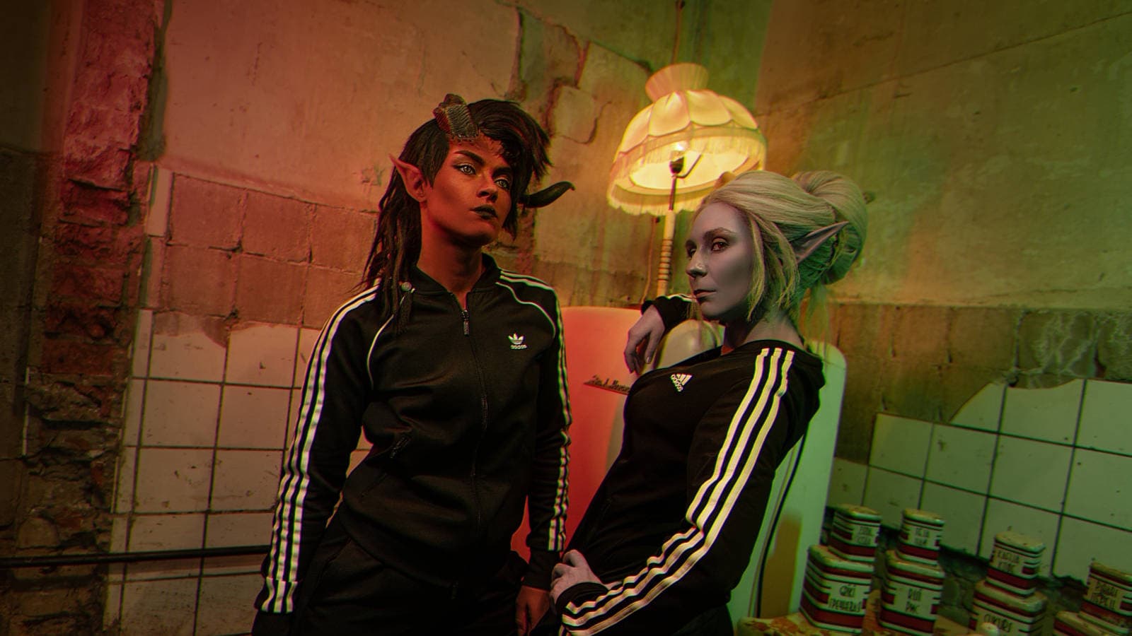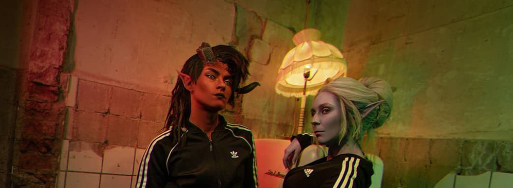 Модели Маргарита «Carroty» Жила и Анна «Nova» Вебер перевоплотились в необычные версии Минтары и Карлах из Baldur’s Gate 3 — гопниц, которые любят сидеть на кортах, щеголять в одежде от Adidas и слушать песню про три полоски.