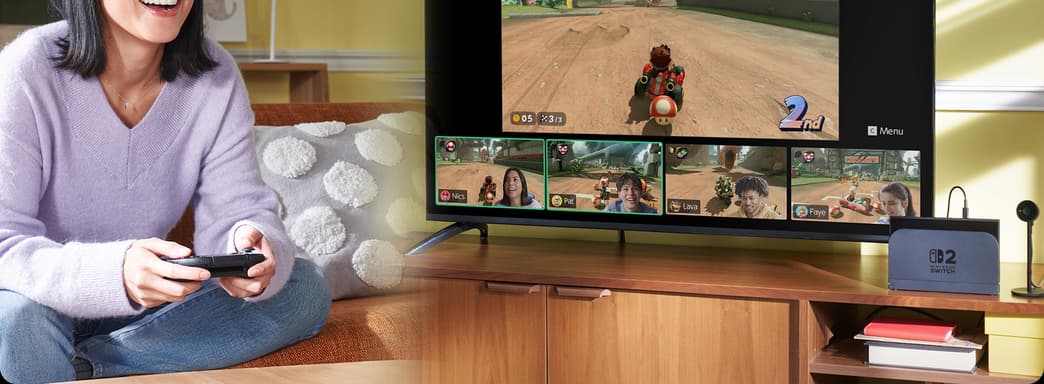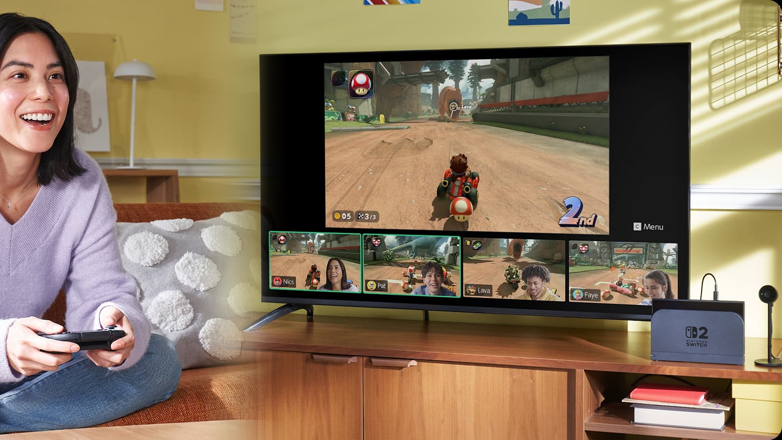 GameChat – одно из ключевых новшеств Switch 2. Это встроенный микрофон и голосовая система, доступная напрямую с консоли и запускаемая одним нажатием кнопки «C» на правом Joy-Con. Это значительный шаг вперед по сравнению с первой Switch, где для чата требовалось отдельное мобильное приложение.