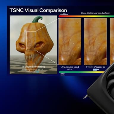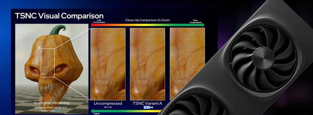 TSNC сжимает стандартные BC1-текстуры при установке или во время игры. Нейросеть хранит данные для восстановления оригинала и работает при инсталляции, загрузке, потоковой передаче текстур и per-pixel сэмплинге. Intel отмечает, что технология пригодна как для экономии VRAM, так и для уменьшения размеров игр и патчей.