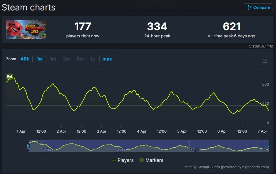 Однако оценки не совпали с интересом. На пике в игре было всего 621 человек одновременно – лишь доля аудитории первой части. Сейчас в классическую 2D-версию играет больше людей, чем в новую. Наличие в Game Pass немного сглаживает ситуацию, но серия по-прежнему держится на имени Эдмунда Макмиллена.