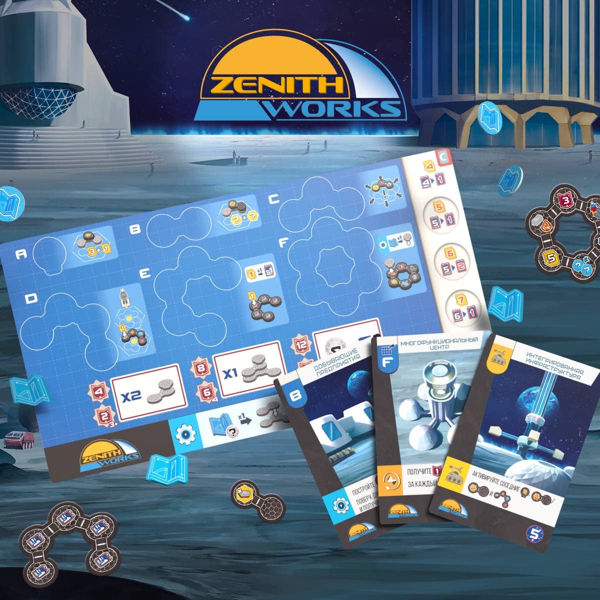 В следующем году дополнение «Вверху. Внутри. Внизу» для настольной игры «База “Шеклтон”. Путешествие на Луну» должно добраться до пользователей из России. Оно добавит в проект три новые корпорации — Lunar City, Undermoon и Zenith Works.