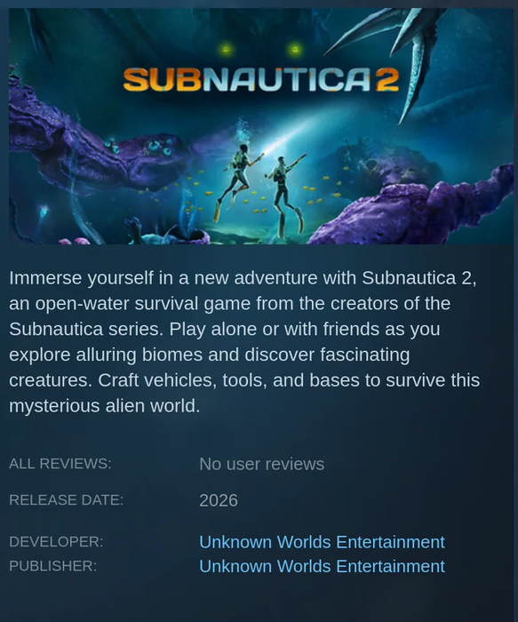 Теперь игроки заметили изменения на странице игры в Steam — Krafton больше не упоминается, ранее она была указана в качестве издателя Subnautica 2: