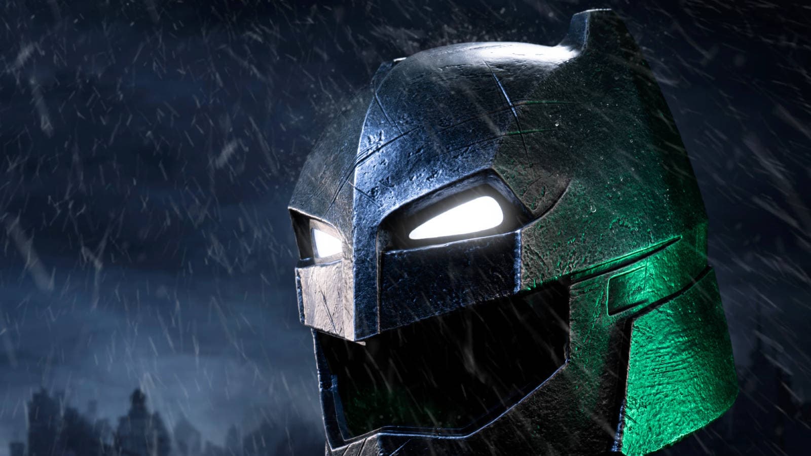Разработанный в стиле брутальной механической эстетики силовой брони Бэтмена, шлем отличается усиленными пластинами, резкими индустриальными линиями и величественным видом, воплощающим его подготовку к битве с Суперменом.