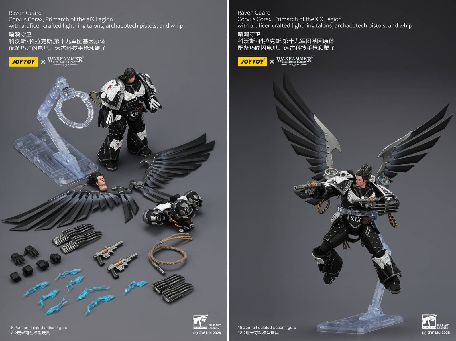 «Гвардия Ворона» из вселенной Warhammer: The Horus Heresy выдвинулась в сторону коллекционеров, так как компания JoyToy представила фигурку примарха Корвуса Коракса, готового расправить крылья и сокрушить врагов с помощью силовых когтей.