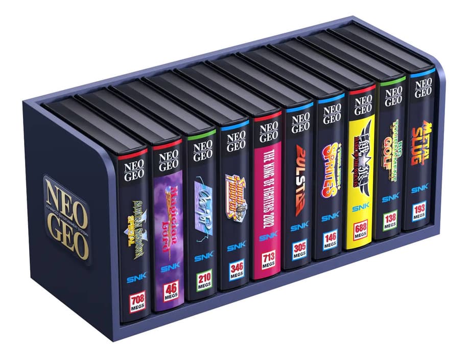 Одновременно с консолью команда выпустит коллекцию из десяти классических игр NEO GEO. В первый день игроки смогут приобрести следующие проекты: Metal Slug, The King of Fighters 2002, Garou: Mark of the Wolves, Big Tournament Golf, Shock Troopers, Samurai Shodown V Special, Pulstar, Twinkle Star Sprites, Magician Lord и Over Top.